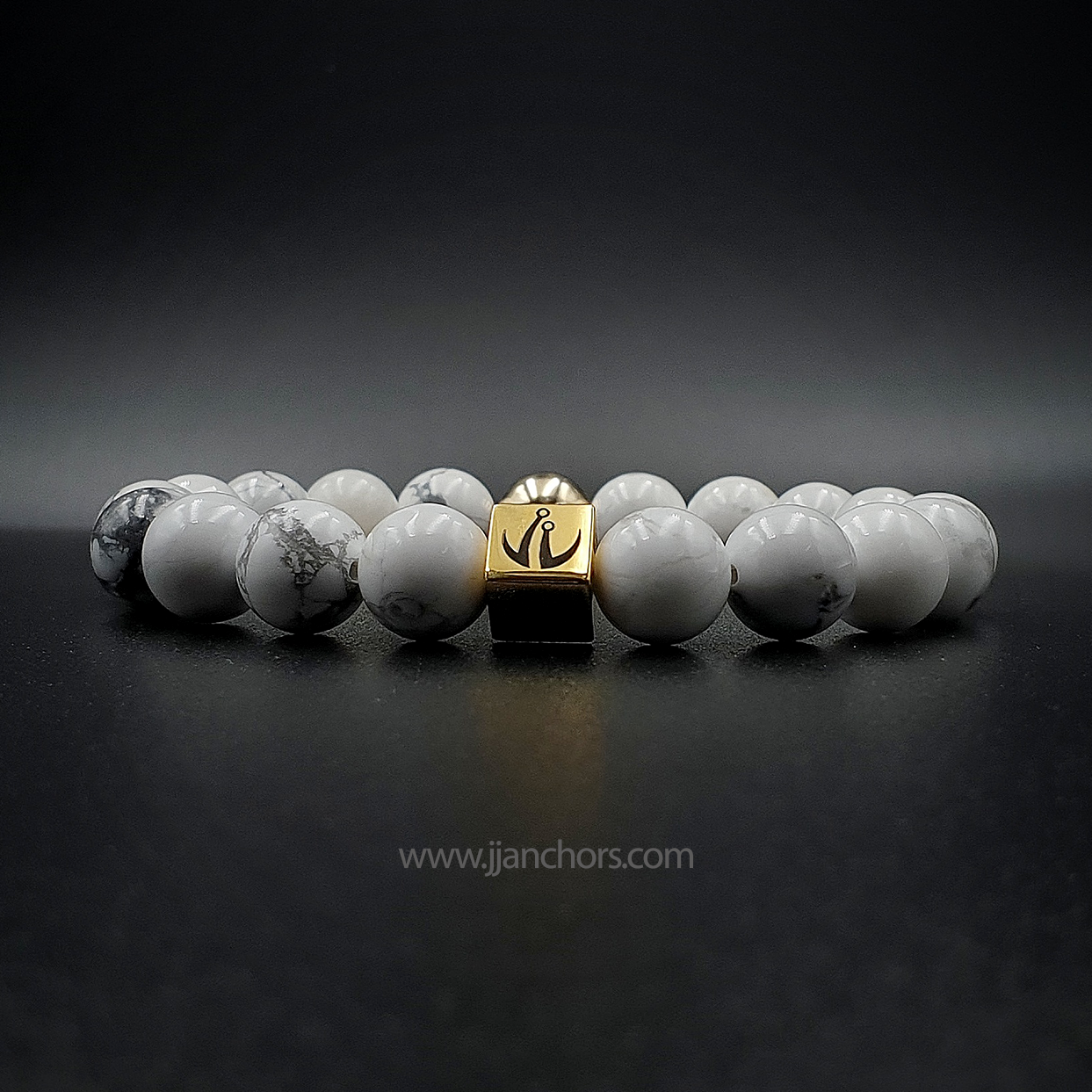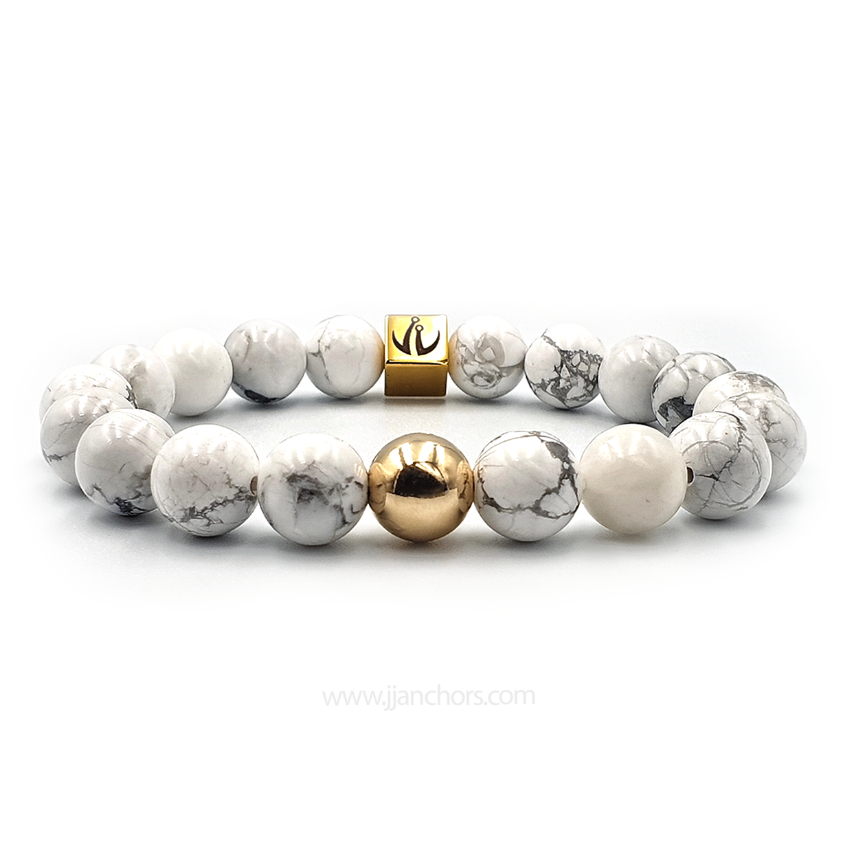 HENRY III is made up of Howlite stones from Canada and 12K Gold bead. This bracelet has beads of 10mm.
