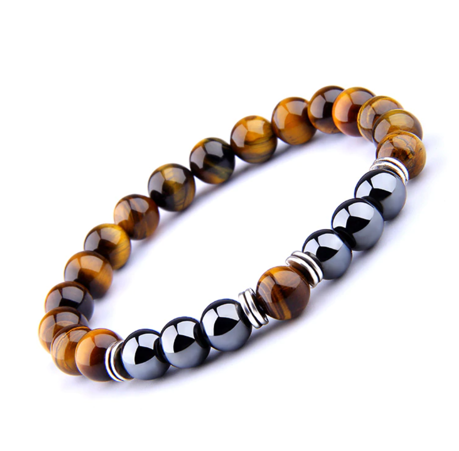 Hermes III - out of Black Onyx 🇺🇦 + Tiger’s Eye 🇿🇦 and Hematite 🇻🇪 Wearing bracelet with black onyx on the left side will welcome a sense of security into the body and spirit. Onyx is a highly protective stone that will usher in grounding vibrations to help you settle a chaotic mind. With a clear head, onyx with then assist you in seeing if there are behaviors, people or energies that you need to cut from your life. Through shielding your body with protective energy, onyx will keep unwanted energy from penetrating your spiritual space and influencing your mood.