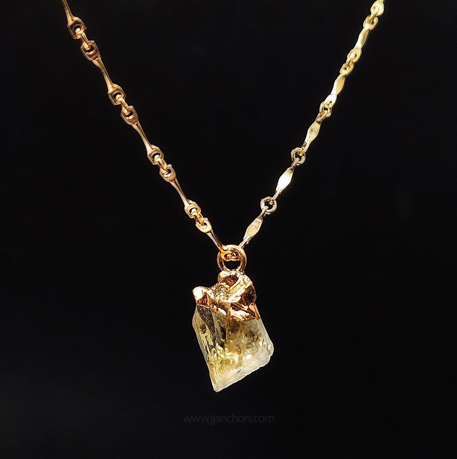 Elevate your style and celebrate the vibrant essence of November with our captivating Bolivian Citrine pendant necklace. Embrace the unique charm and radiant allure of this birthstone, making a statement that's as luminous as it is captivating.
