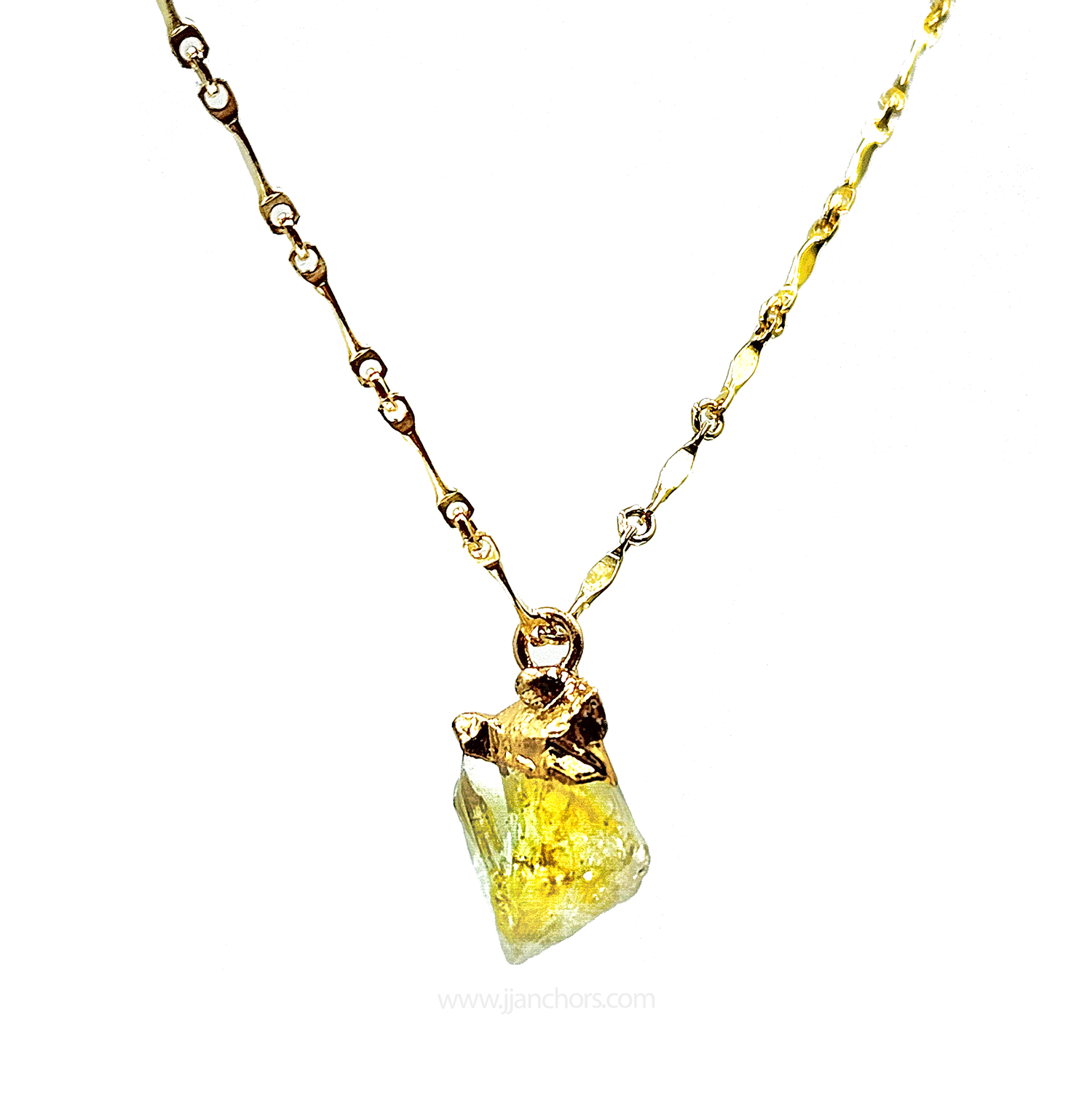 Raw Bolivian Citrine in 10K Gold Necklace | NOVEMBER Birthstone