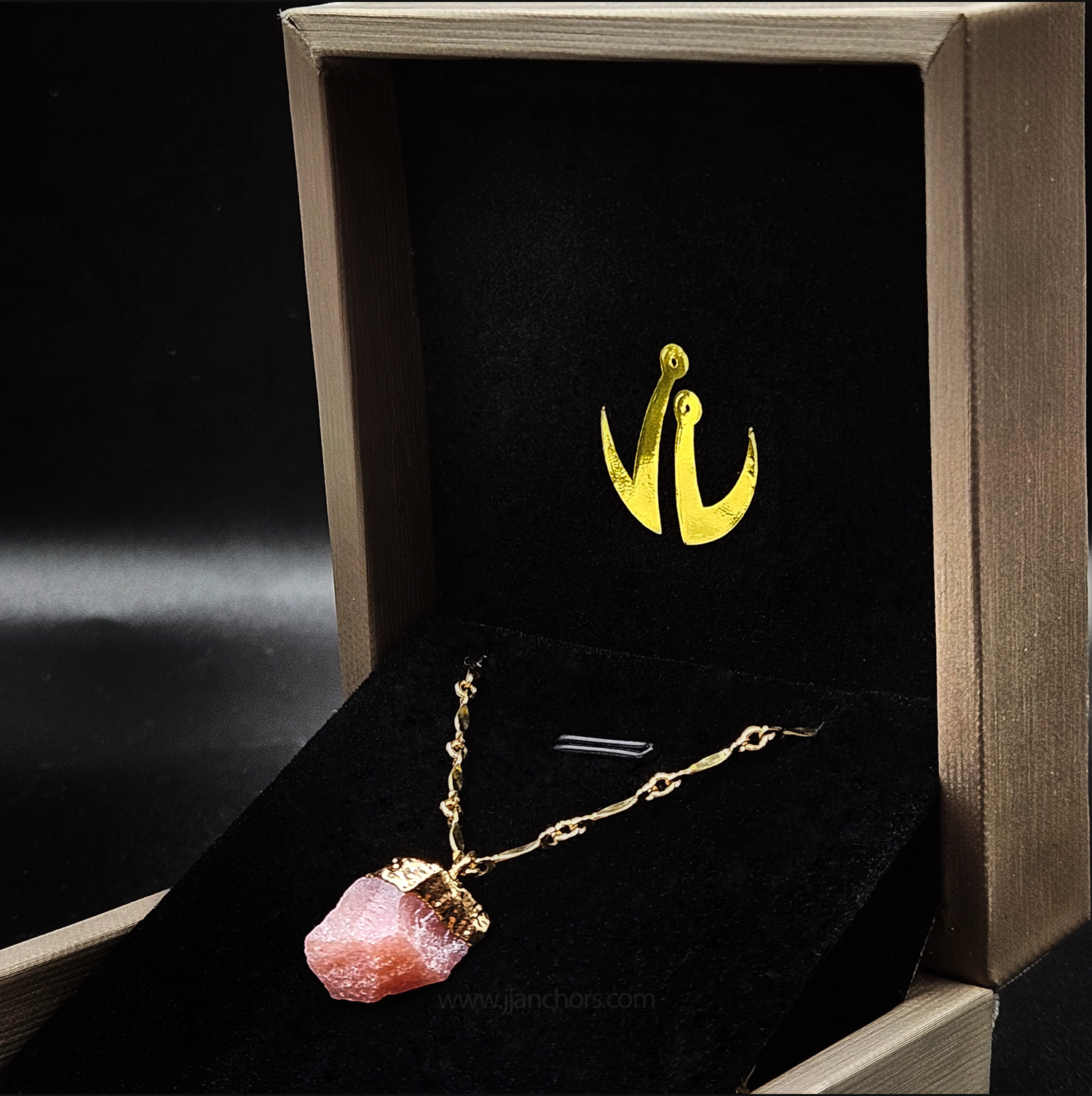 At the core of this necklace lies a raw, untreated Peruvian Pink Opal, unveiling the natural allure and soft hue of this exceptional gemstone. Each stone exudes gentle radiance, making every pendant a unique symbol of serenity and emotional balance.
