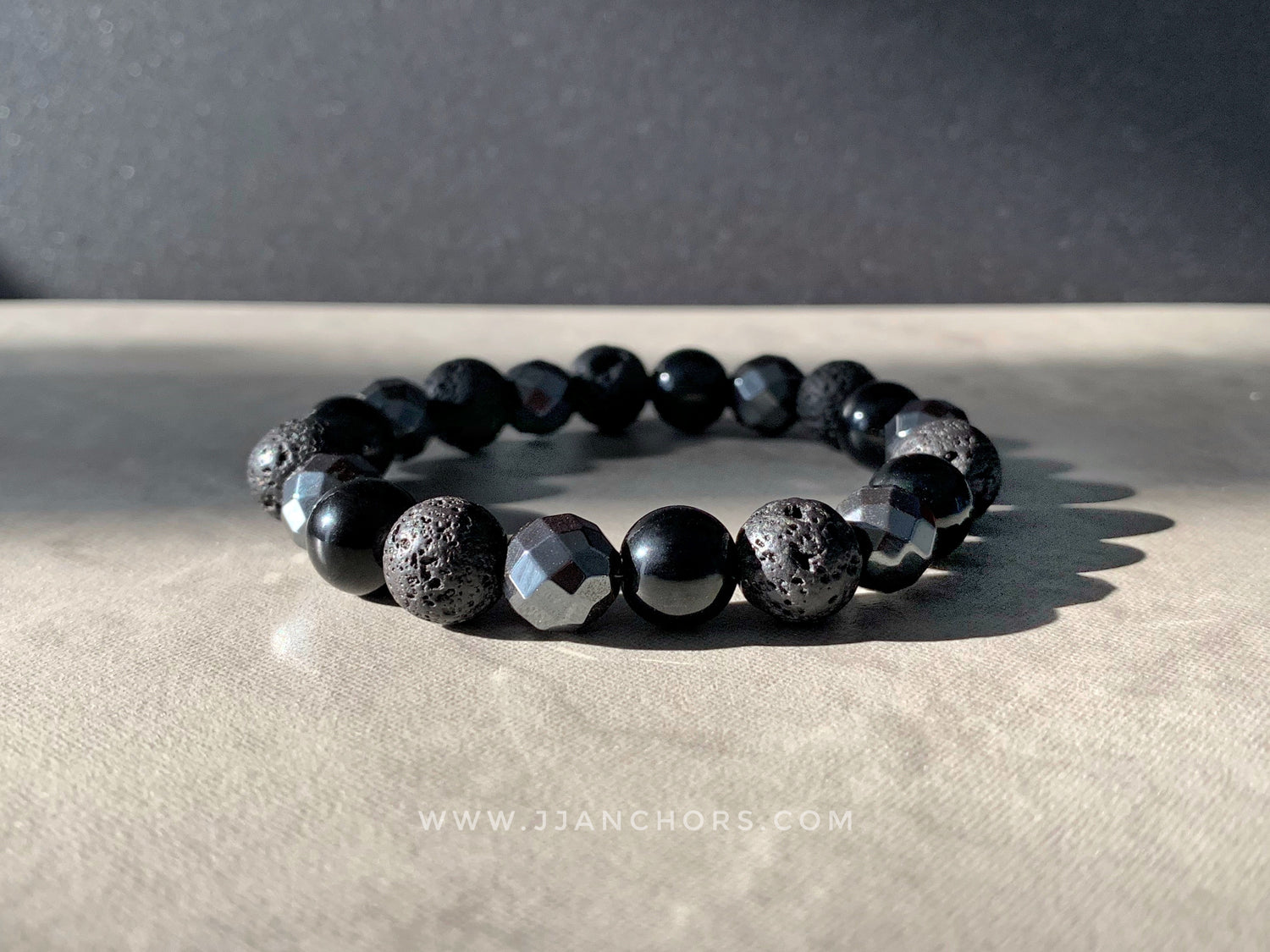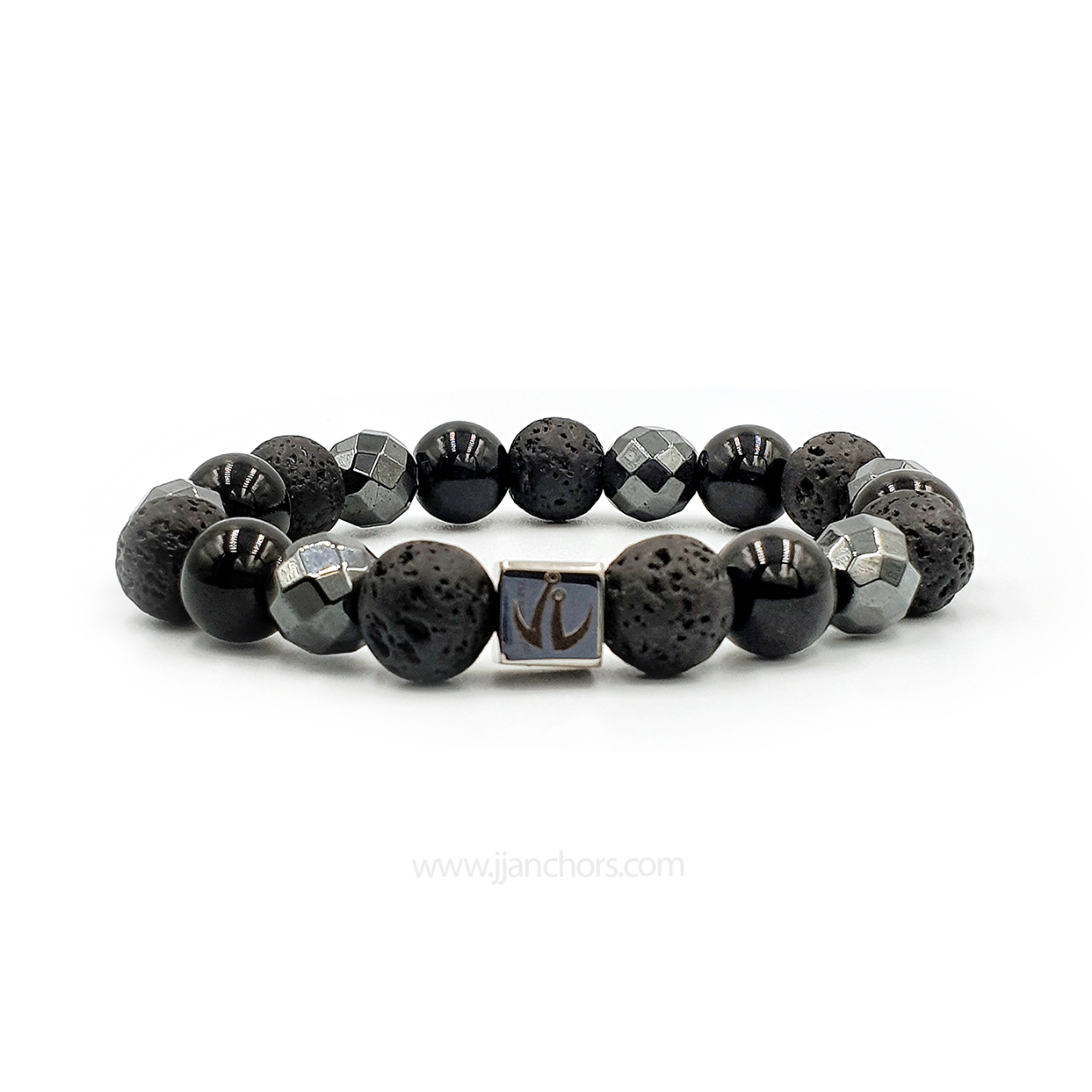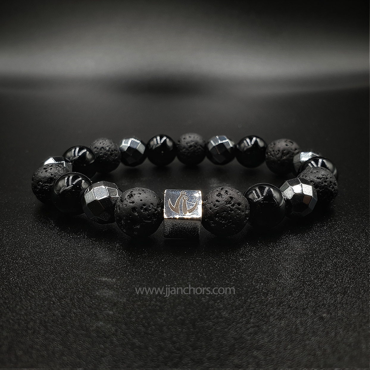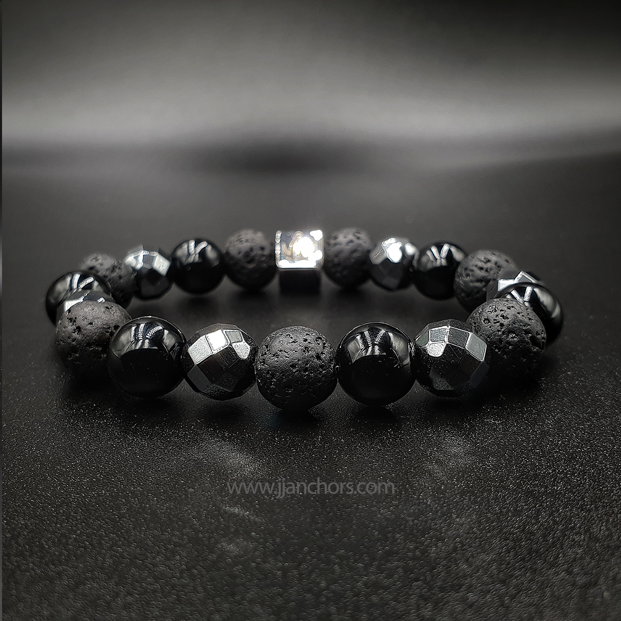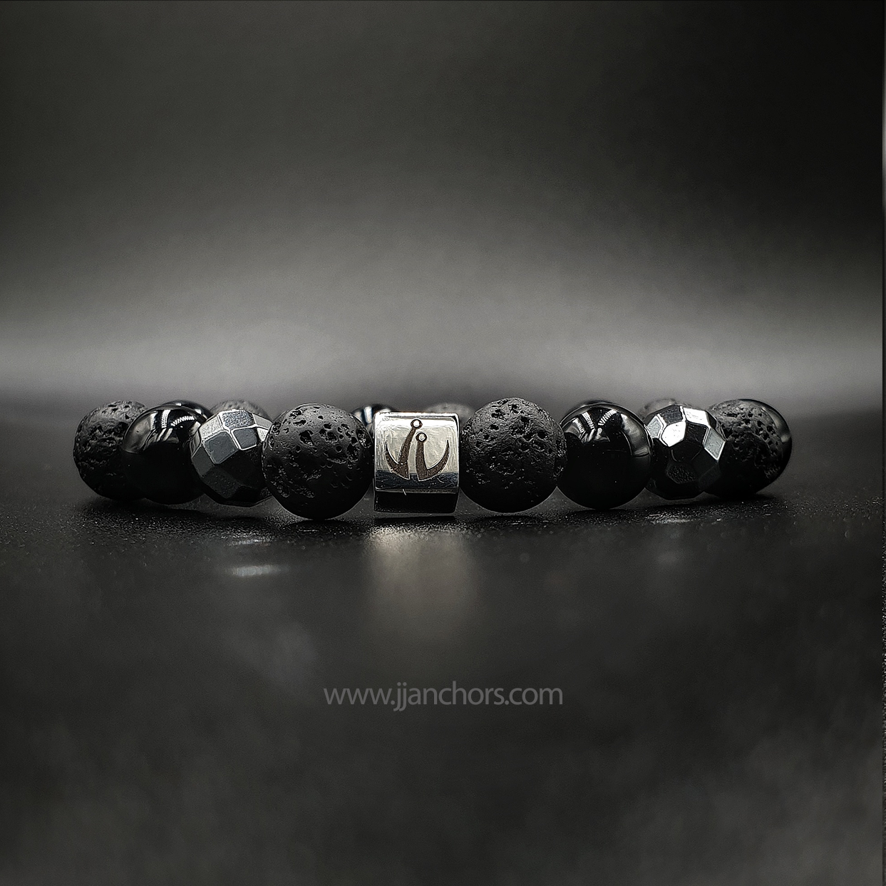Thiago is out of Black Onyx from Ukraine 🇺🇦 Volcanic Lava Stone from Mt. Ararat Turkey 🇹🇷 and faceted Hematite from Venezuela 🇻🇪
